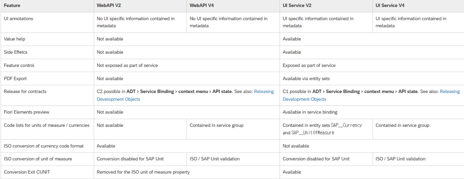 이러한 차이는 UI 애노테이션, 값 도우미(Value Help), 부수효과(Side Effects), PDF 내보내기와 같은 다양한 기능에서 나타납니다.